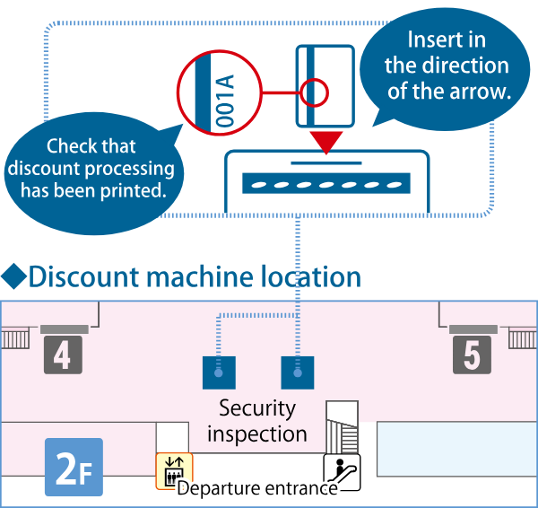- After arrival, please use the discount machine and fare adjustment machine in the baggage claim area. Discounted fare will be applied.