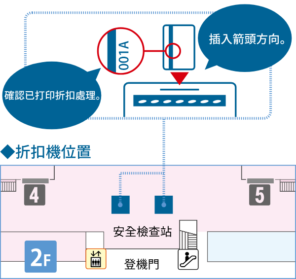 - 安全檢查結束後,請將停車券插入安全檢查區的打折機。